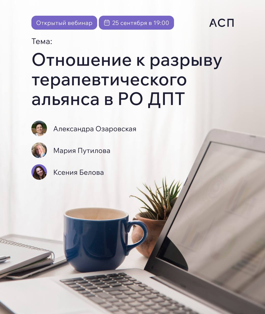 Приглашаем вас рассмотреть эти новые яркие грани терапевтических отношений на вебинаре «Отношение к разрыву терапевтического альянса в РО ДПТ»